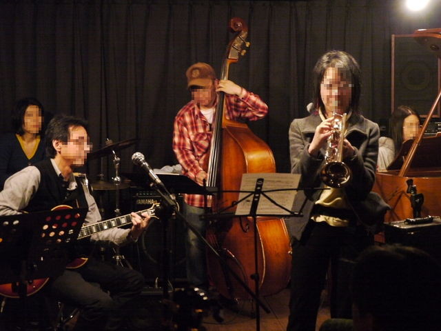 ベースホストさんも含めて3人、ギター3人、ヴォーカル1人、ドラム1人。ヴァイオリン1人。